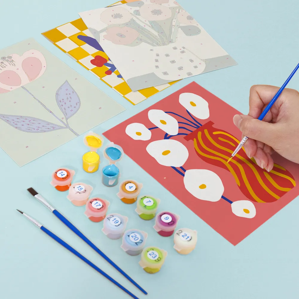 De set “Abstracte Bloemen” Mini Schilderen op Nummer combineert op unieke wijze moderne kunst en bloemenpracht. Met levendige kleuren, creatieve vormen en een fantasierijke weergave is dit motief ideaal voor liefhebbers van abstracte ontwerpen. Perfect voor creatieve pauzes, moderne decoratie of als stijlvol cadeau. De set bevat een voorbedrukt mini-canvas, genummerde acrylverf en een kwast – voor een inspirerende doe-het-zelf-ervaring op klein formaat.