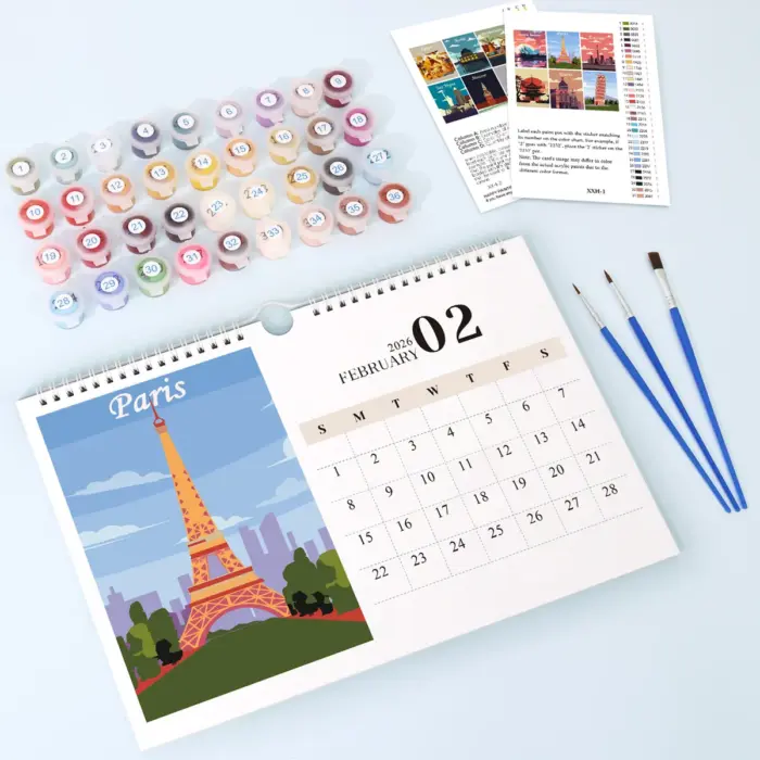 Duik maand na maand in de fascinerende wereld van metropolen – met onze Schilderen op Nummer Kalender 2026 – Beroemde Steden. Elke maand brengt je een nieuw, liefdevol ontworpen stadsmotief dat je met je eigen kleuren tot leven kunt brengen. Of het nu Parijs, Rome, New York of Tokyo is – elke illustratie nodigt uit tot creatieve ontspanning en dromen.