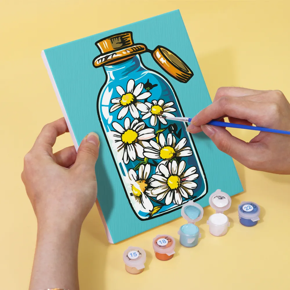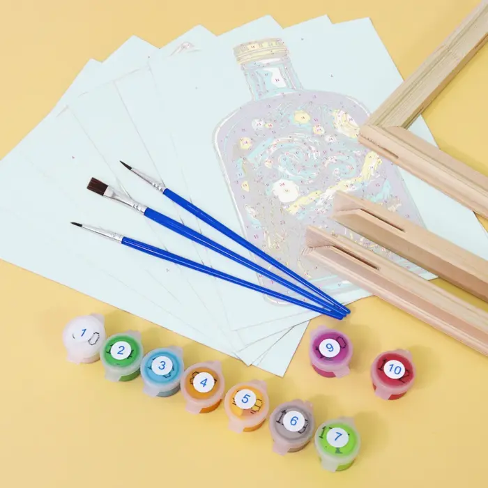 De “Designer Flessen” Mini Schilderen op Nummer set combineert elegantie met creativiteit. Of het nu parfumflesjes, fijne drankflessen of kunstig ontworpen containers zijn – dit motief is een echte blikvanger voor designliefhebbers. Ideaal voor stijlvolle decoratie, creatieve cadeaus, of als een ontspannend doe-het-zelf project. Het voorbedrukte minidoek, hoogwaardige acrylverf en een fijn penseel zorgen voor een gemakkelijke maar expressieve schilderervaring.