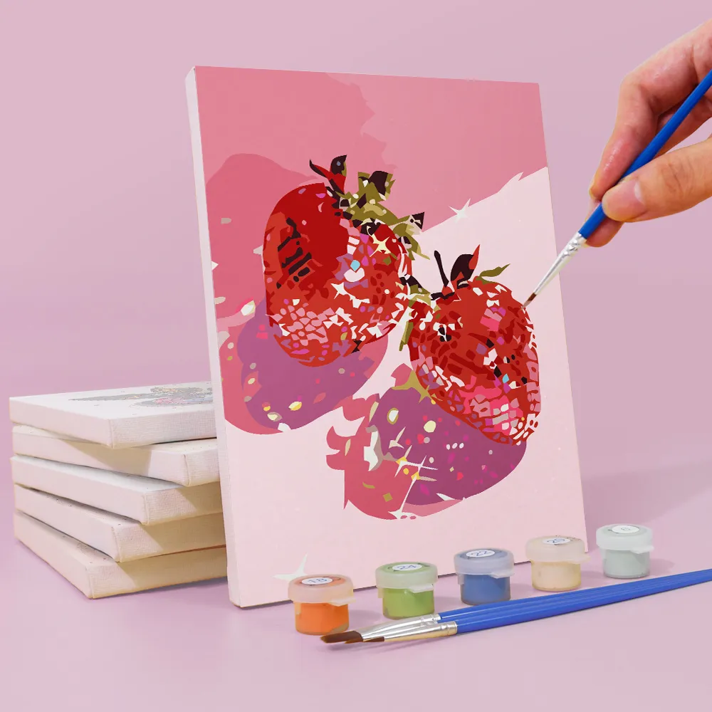 De “Exotische Vruchten” Mini Schilderen op Nummer set brengt tropische frisheid en levendige kleuren naar jouw canvas. Of het nu ananas, papaya, drakenfruit of kiwi is – dit motief is een kleurrijk feest voor alle zintuigen. Ideaal voor creatieve pauzes, zomerse decoratie of als cadeau voor fruitliefhebbers. De set bevat een voorbedrukt minicanvas, heldere acrylverf en een kwast – perfect voor beginners, kinderen of iedereen die zin heeft om wat kleur toe te voegen.