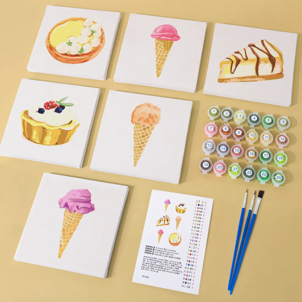 De “IJs” Mini Schilderen op Nummer set brengt zomerse frisheid en zoet plezier op het doek. Of het nu in een hoorntje, in een beker of met kleurrijke toppings is – de levendige ijsontwerpen zorgen direct voor een goed humeur. Perfect voor creatieve pauzes, kinderen of als origineel DIY-cadeau. Het voorbedrukte minicanvas, heldere acrylverf en de kwast zorgen voor een ontspannen schilderervaring vol kleur en plezier.