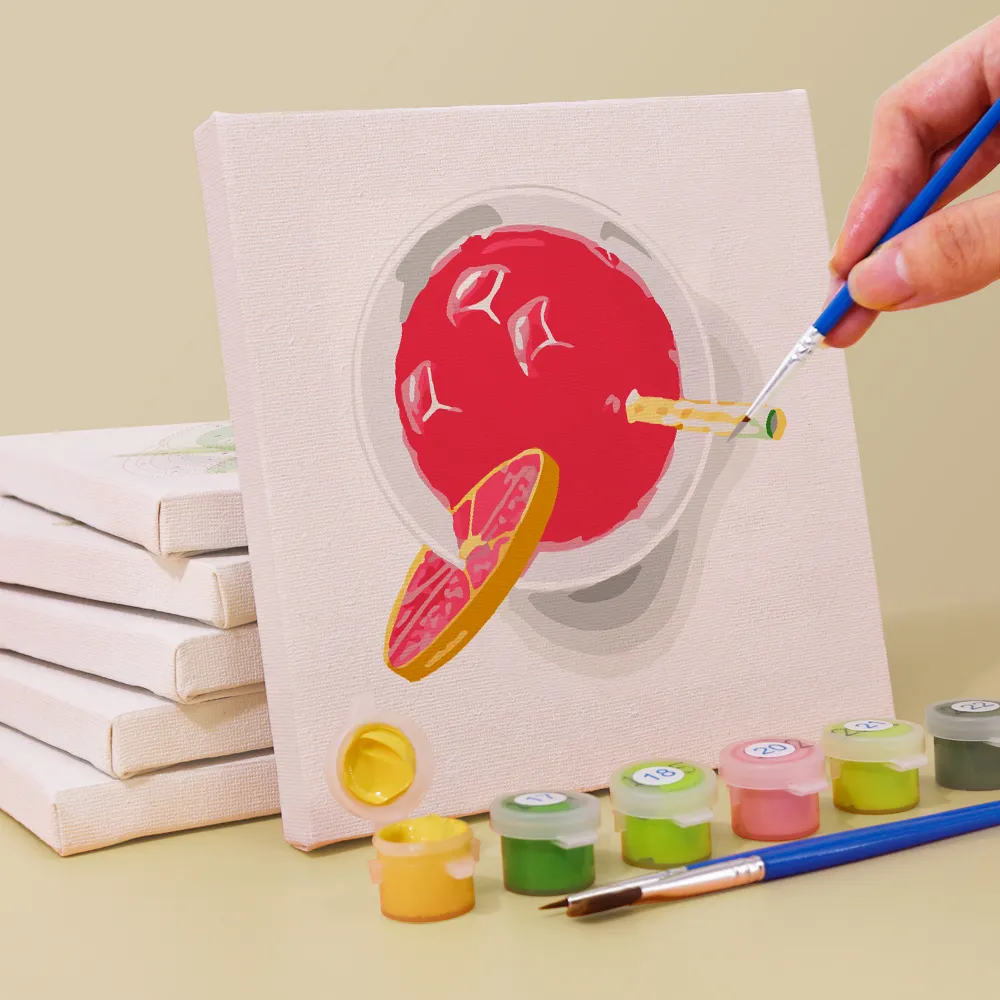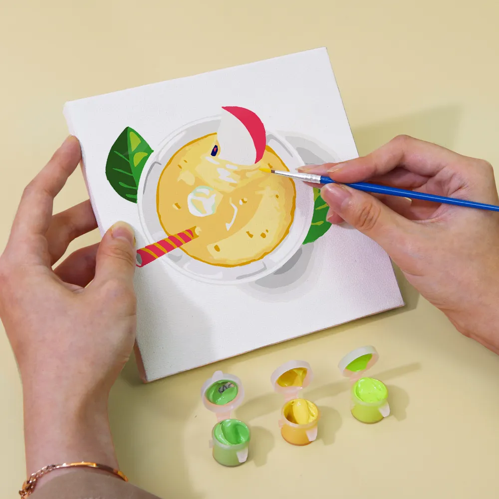 De “Kleurrijke Bruisende Drankjes” Mini Schilderen op Nummer set brengt een bruisende verfrissing en vrolijke kleuren rechtstreeks naar het canvas. Of het nu met citrusvruchten, bessen of munt is – de fantasierijke glazen barsten van levensvreugde en zomerse vibes. Ideaal voor creatieve pauzes, als klein DIY-cadeau of zomerse decoratie. Het voorbedrukte minicanvas, heldere acrylverf en de meegeleverde kwast maken schilderen gemakkelijk, kleurrijk en ontspannend – zelfs voor beginners.
