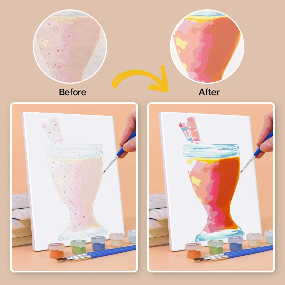 De “Kleurrijke Mojito’s” Mini Schilderen op Nummer set brengt verse munt, pittige limoenen en kleurrijke zomervibes naar het canvas. Dit tropisch geïnspireerde motief combineert koele verfrissing met levendige kleuren – ideaal voor creatieve pauzes op warme dagen. Perfect voor beginners, cocktailliefhebbers of als klein cadeau. De set bevat een voorgedrukt minicavas, levendige acrylverf en een kwast – ontspan en breng kleur in het glas!