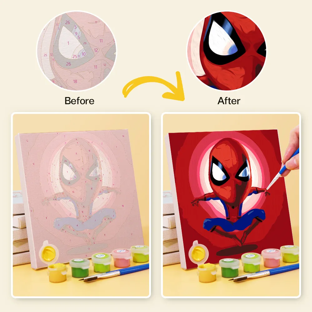 De ‘Mini Spiderman’ Schilderen op Nummer-set brengt de iconische superheld in een schattige comicversie rechtstreeks op jouw canvas. Met grote ogen, een stralend pak en een speelse stijl is dit motief ideaal voor kinderen en Marvel-fans.