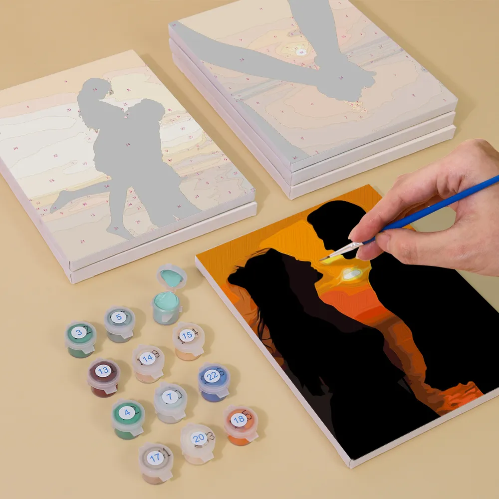De “Romantisch Koppel” Mini Schilderen op Nummer set toont een liefdevol moment tussen twee mensen – of het nu bij zonsondergang, in de regen of tijdens het dansen is. Dit sentimentele motief is ideaal om emoties uit te drukken met kleur. Perfect als cadeau voor speciale gelegenheden zoals Valentijnsdag of jubilea. Het mini-canvas, de genummerde verf en de meegeleverde kwast maken schilderen een ontspannende ervaring – zelfs voor beginners.