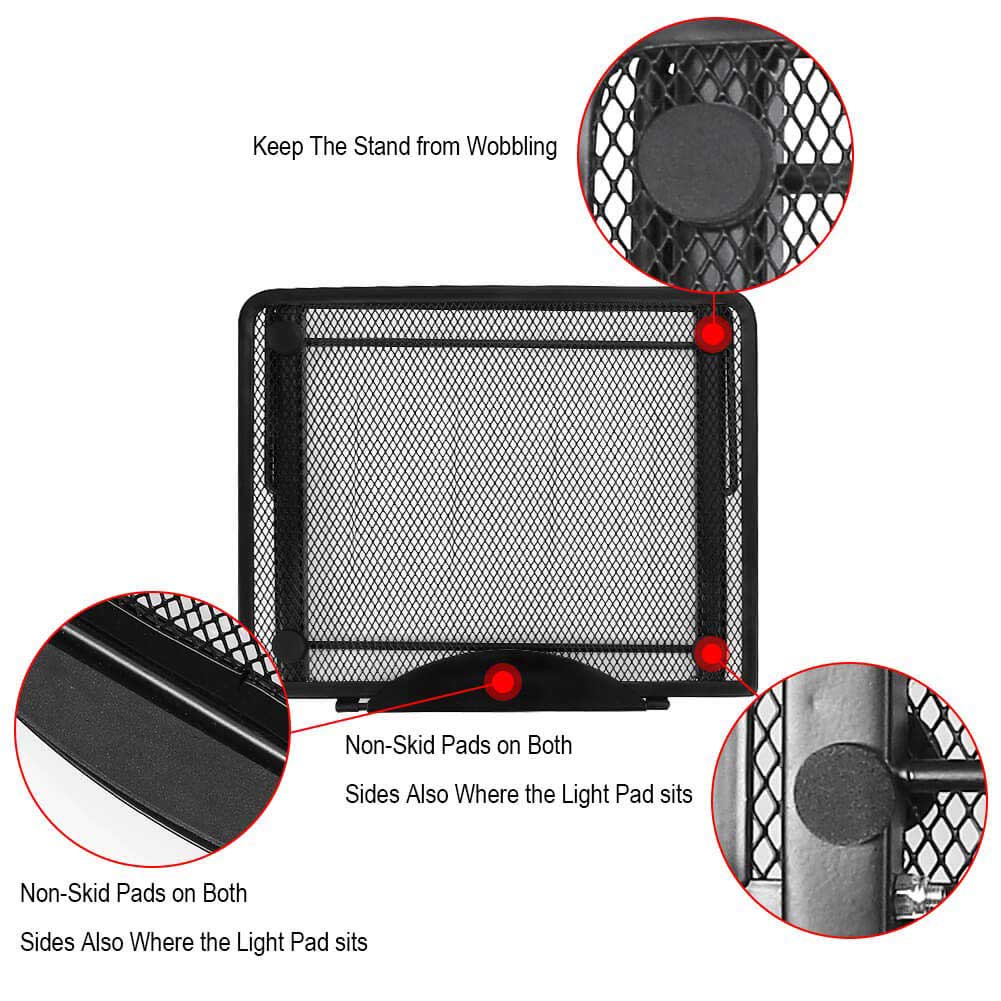 We hebben gekozen voor een mesh ontwerp. Als je een apparaat zoals je laptop of iPad op deze standaard gebruikt, helpt deze standaard om het apparaat koel te houden.